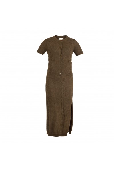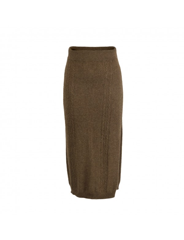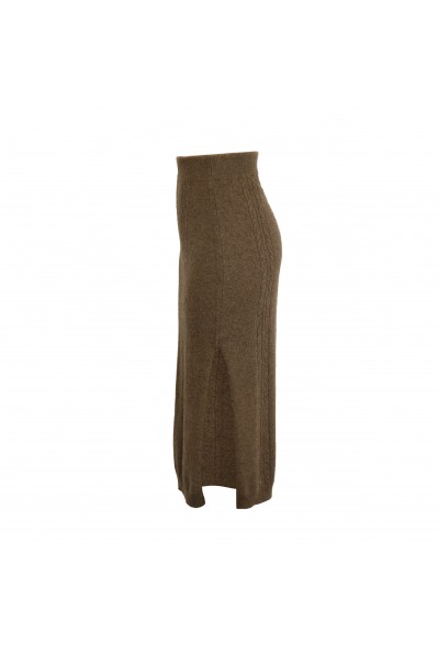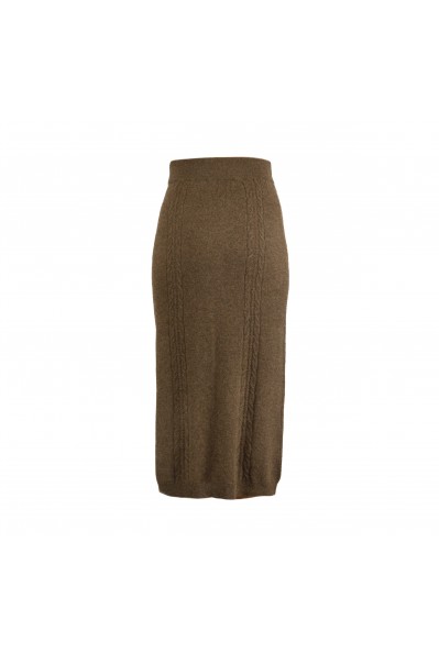Cervinia Women's skirt Cappuccino, with side slit, cable pattern, in 100% virgin new yak down