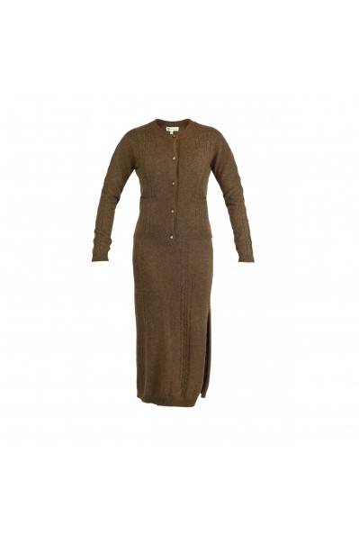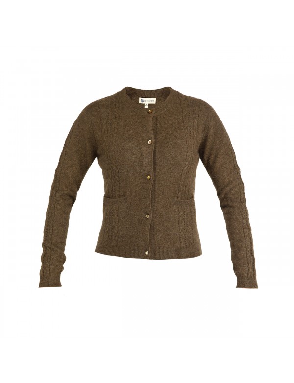 Cervinia Women's cardigan Cappuccino, with cable pattern, long sleeves, in 100% new yak down